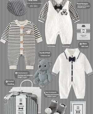 Baby Gift Package Elegant White Striped Gray Baby Boy