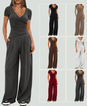 Women's Short-sleeve Sportswear And Wide-leg Pants Set