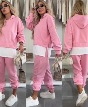 Hooded Sweatshirt Suit Loose Long Sleeve False Two-piece Tops And Jogger Sports Trousers Casual Spots Set For Women's Clothing
