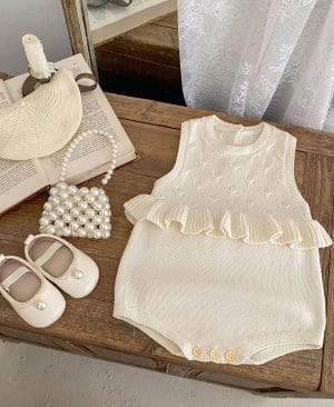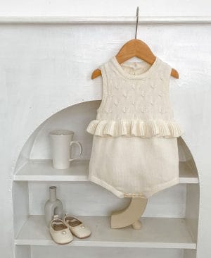 Baby Girl's Ruffle Vest Cute Fashionable Knitted Jacket All-matching Romper