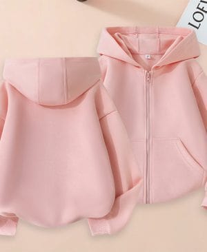 Girl's Casual Versatile Solid Color Pocket Zipper Hoodie