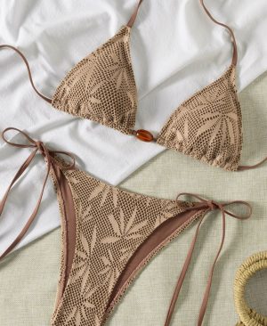 Black-and-white Plaid Ruffled Hem Halter-style Bottomed One-piece Swimsuit