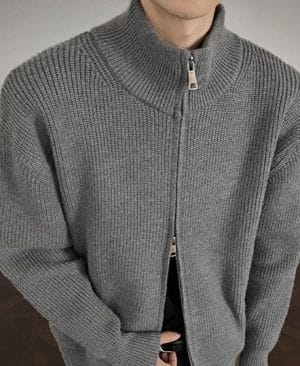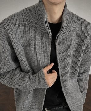 Men's Solid-Color Slim-Fit Turtleneck Sweater Jacket With Zipper