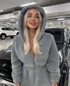 Womens Warm Hooded Zip-Up Cardigan Sweater