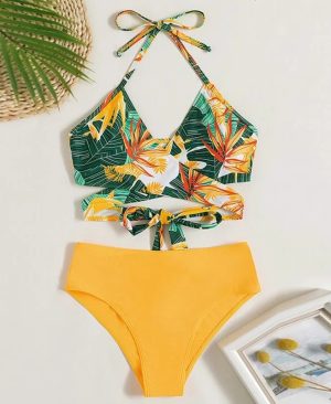 Women's Vest-style Bikini Backless Floral-print Two-piece Swimsuit