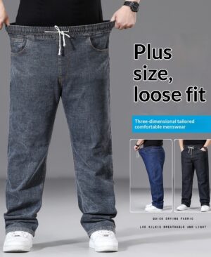 Loose-fit Straight-leg Plus-size Mens Baggy Pants With Elastic Waist