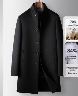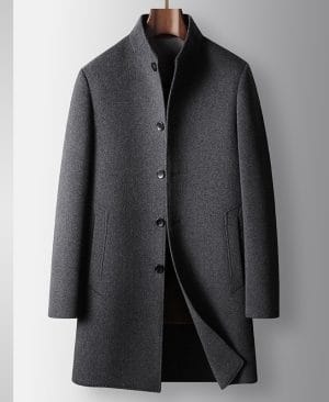 Men's Mid-Length Handmade Wool Coat With Stand Collar