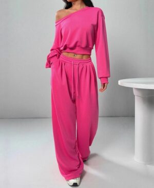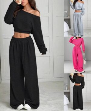 Women's Fashion Slim-fit Off-the-shoulder Navel Solid Color Casual Pants Suit