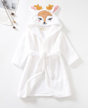 Girls Cartoon Hooded Flannel Lace-up Bathrobe