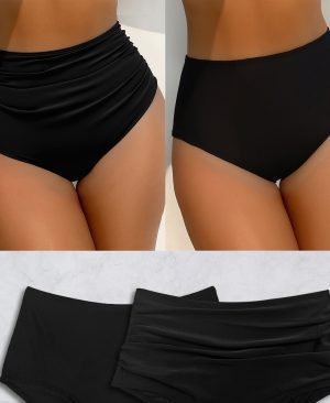 Solid-color Beaded Accessory Bikini Womens Swimsuit Three-piece Set