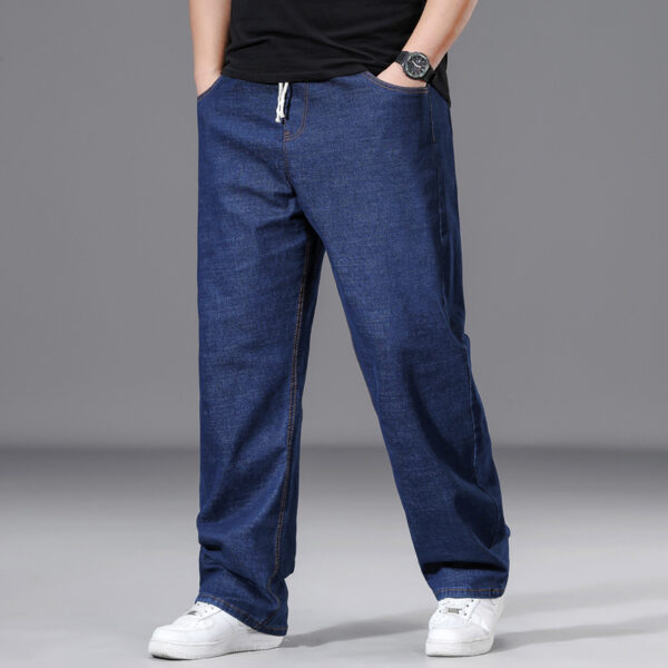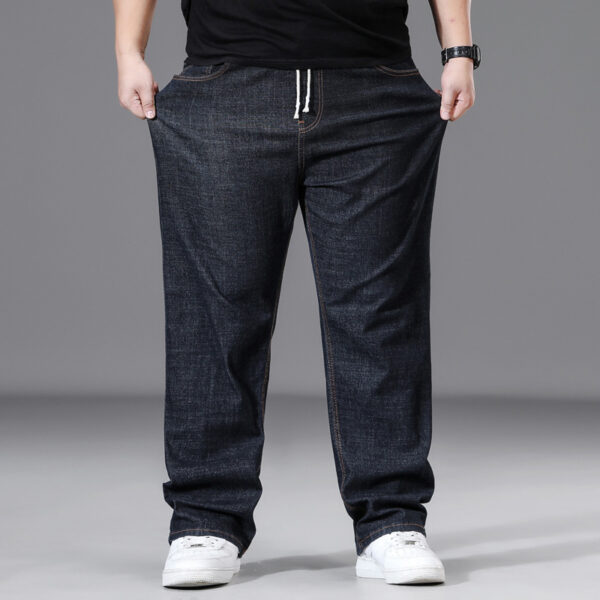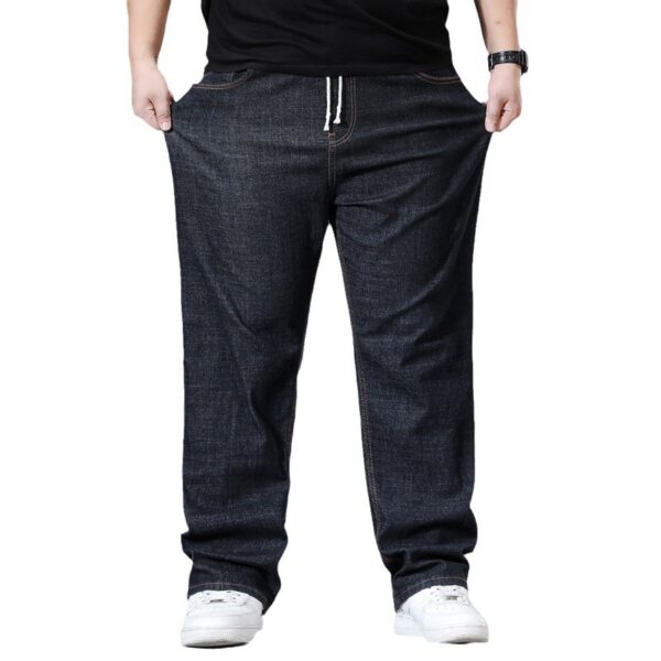 بنطلون فضفاض بقصة مستقيمة للرجال بأحجام كبيرة مع خصر مرن