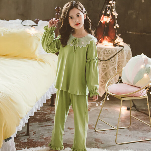 بيجامات أطفال ربيعية وخريفية للبنات من القطن بأكمام طويلة – بدلة من قطعتين