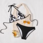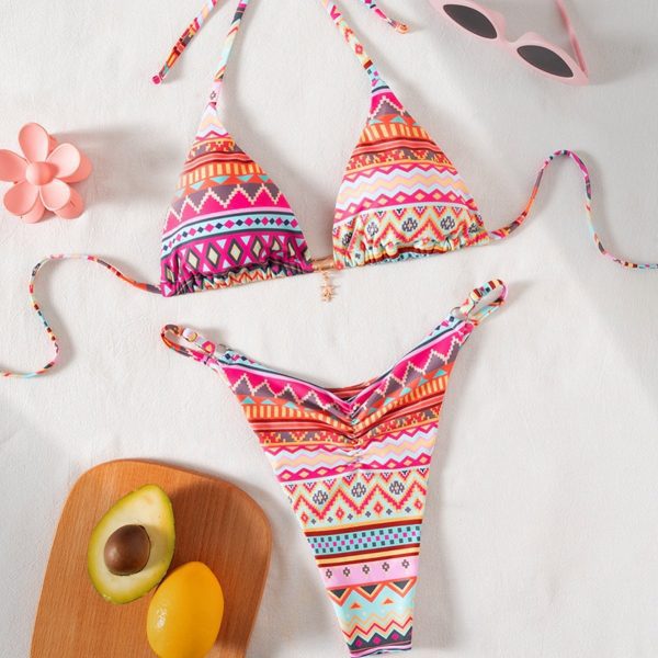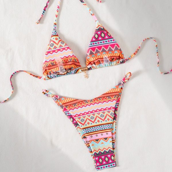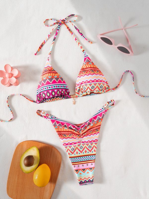 بيكيني مثلث برباط قابل للتعديل بخصر مطبوع – بدلة سباحة مكونة من قطعتين