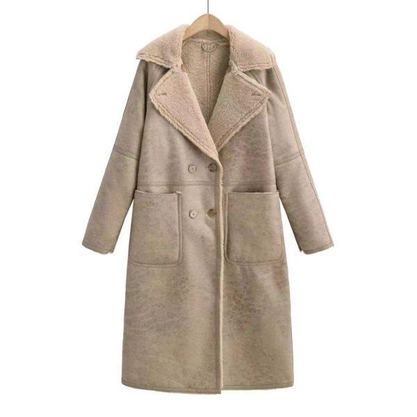 معطف شتوي بحزام موضة مزدوج الصدر طراز لابيل معطف ترينش طويل للنساء معطف متوسط الطول
