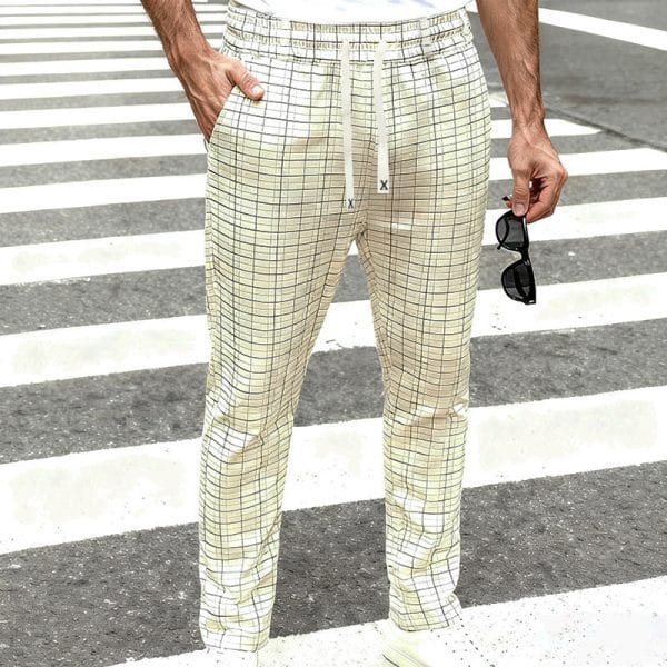 سروال رجال خفيف الوزن بقصة فضفاضة عصرية بأسلوب عمل بسيط رياضي واسع الساقين