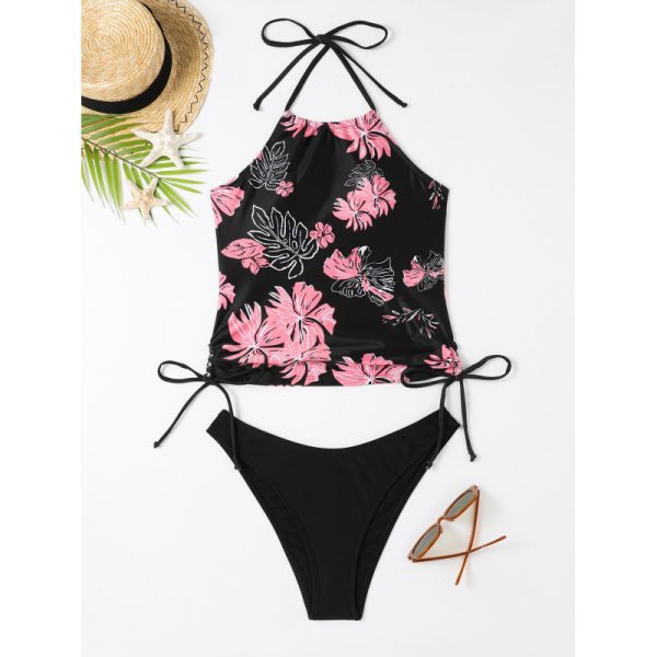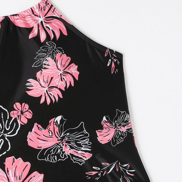 مايوه مطبوع بحمالة عنق قابلة للتعديل وخلفية مكشوفة سريع الجفاف