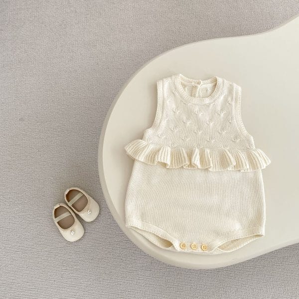 Baby Girl’s Ruffle Vest Cute Fashionable Knitted Jacket All-matching Romper