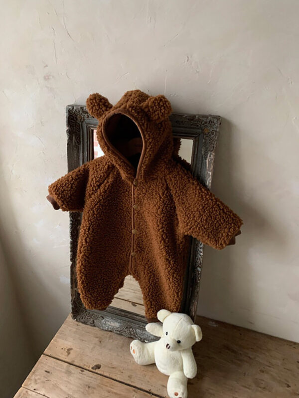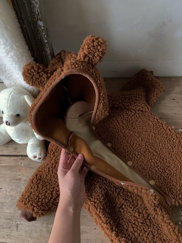 Baby Winter Boys And Girls Bear Double-sided Lamb Hooded Cotton Jersey