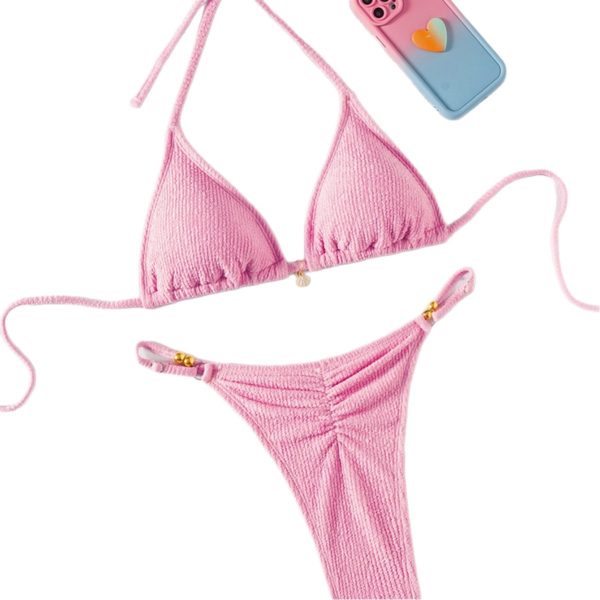 Beaded Accessory Adjustable Waist Ruffled Bikini Swimsuit For Women