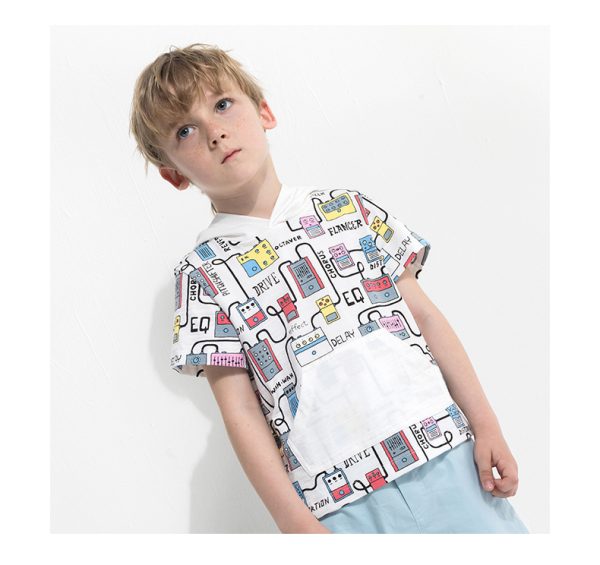 Be the first to review “Cartoon print boy’s hooded short sleeve t-shirt”