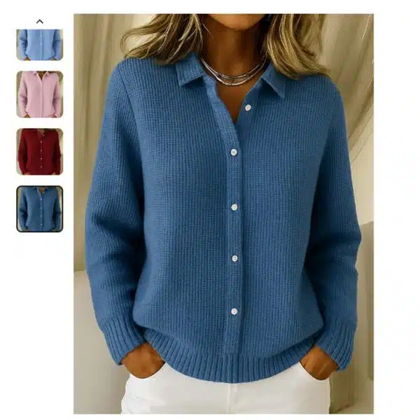 Casual Fashion Button Knitted Lapel Sweater For Women