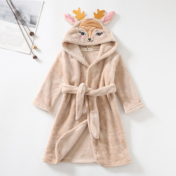 Girls Cartoon Hooded Flannel Lace-up Bathrobe