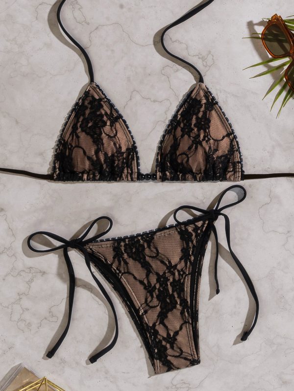 Be the first to review “Lace Triangle-cup Tie-front Bikini Swimsuit”