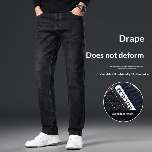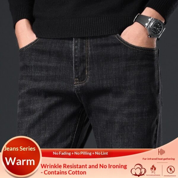 Mens New All-Match Thicker High-End Slim-Fit Straight Jeans