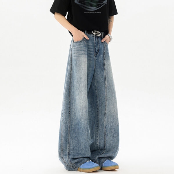 Retro Blue Denim Mens Loose Wide-leg Pants