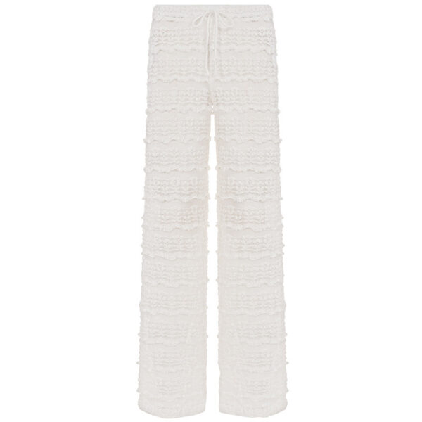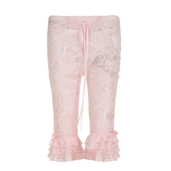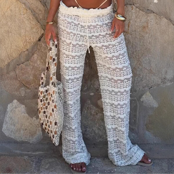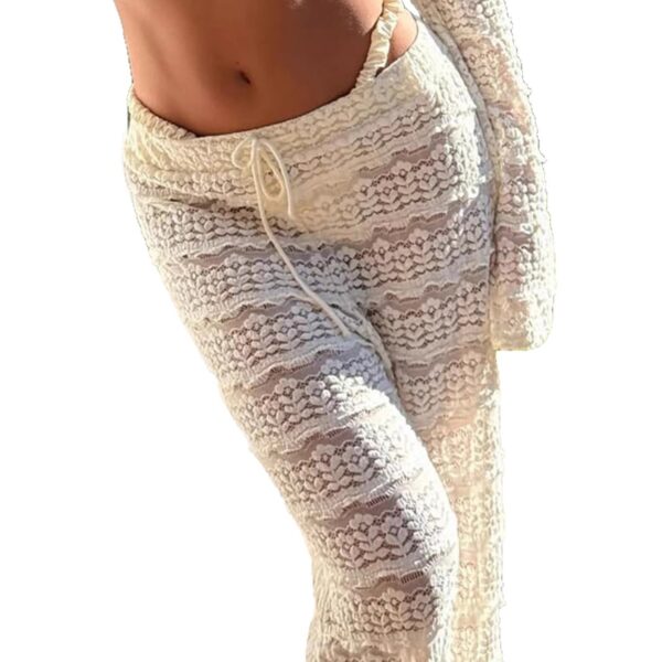 Womens Casual Hollow-Out Lace Patchwork Jacquard Knit Pants