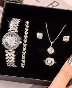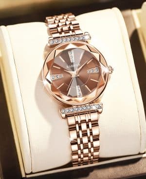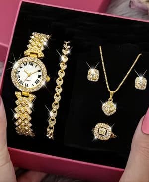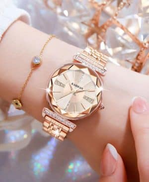 Women’s Diamond Dial Belt Quartz Watch Beaded Bracelet Suit
