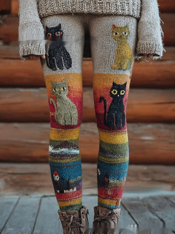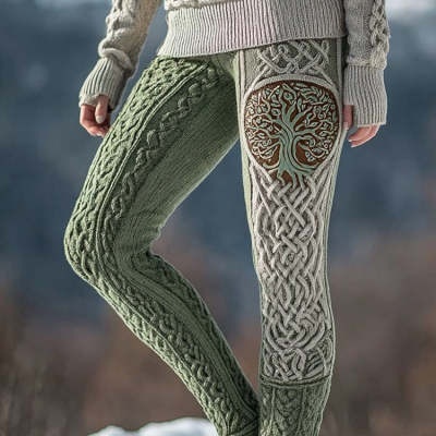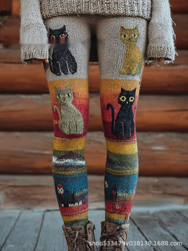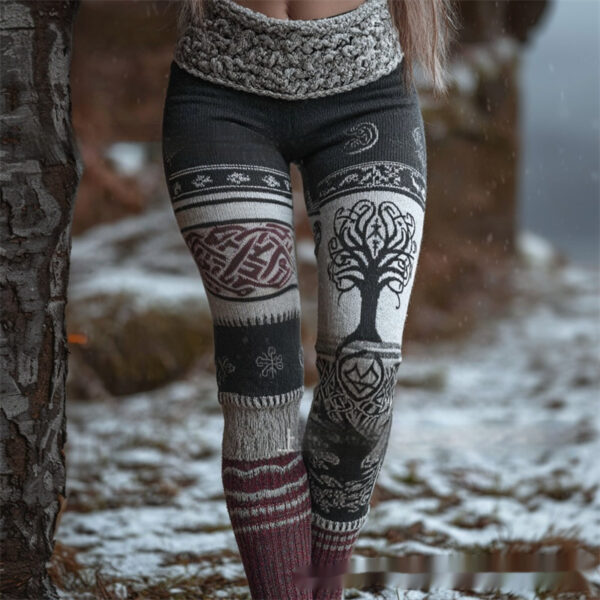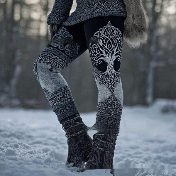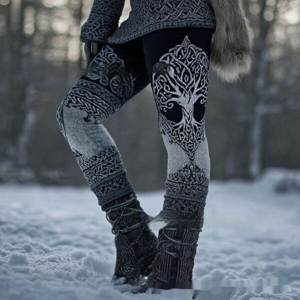 Womens Retro Casual Sports Leggings With 3D Digital Print
