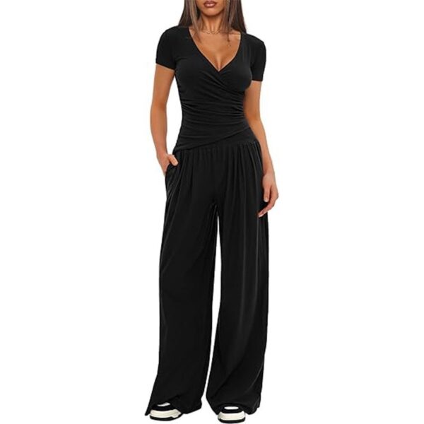 Women’s Short-sleeve Sportswear And Wide-leg Pants Set